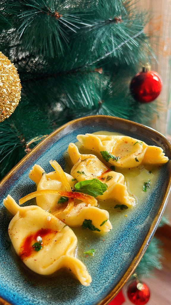 Candy shaped holiday special pasta filled with mascarpone, candied orange, orange, ricotta, nutmeg, cinammon & brown sugar. Pair these with our cinnmon brown sugar butter for the most wholesome and heartwarming dessert/breakfast whatever you want it to be! Drizzle some balsamic on top and you're good to go.
