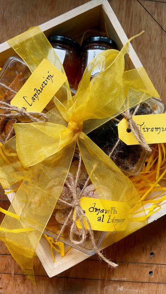 Our "dolcetti" consists of some of our bestest house-made sweet treats and includes our tiramisu (or chocolate tart for eggless), amaretti, cantuccini (or occhi di bue for eggless) all packed in festive gift trays.