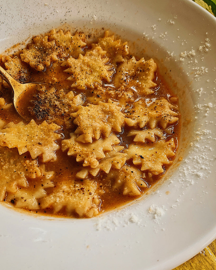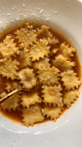 HOW TO PREPARE: Simply boil the little pasta squares in the broth for 2-3 minutes and serve hot with a sprinkling of parmigiano.