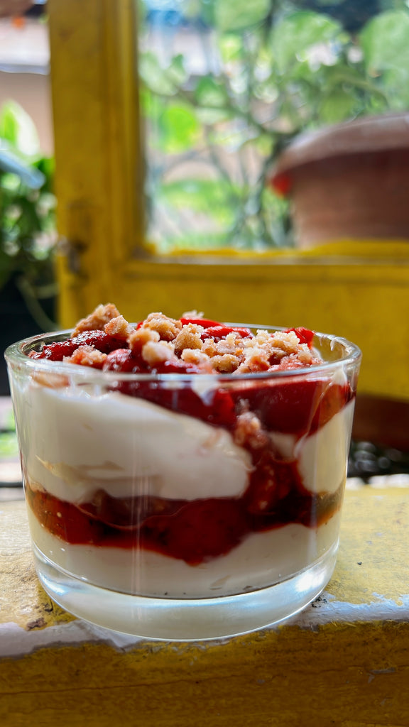 Macerated balsamic strawberries layered with a whipped mascarpone and our house-made amaretti.